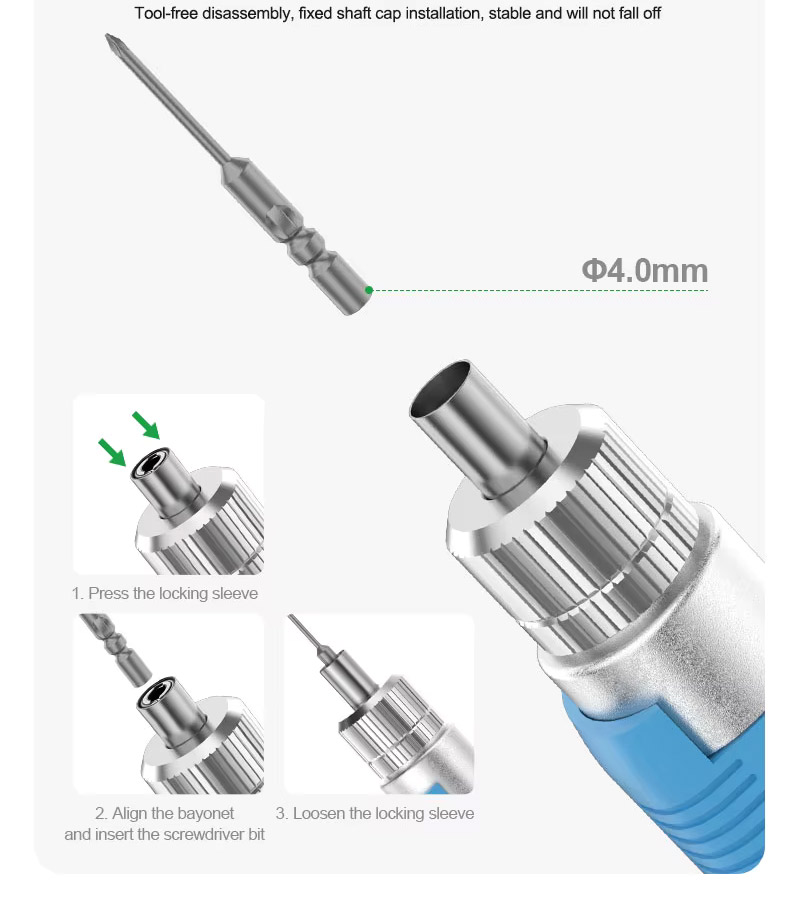 • Velocidade e torque ajustáveis para diferentes níveis de aperto e controle durante o reparo
