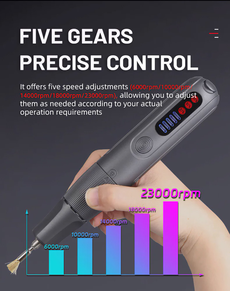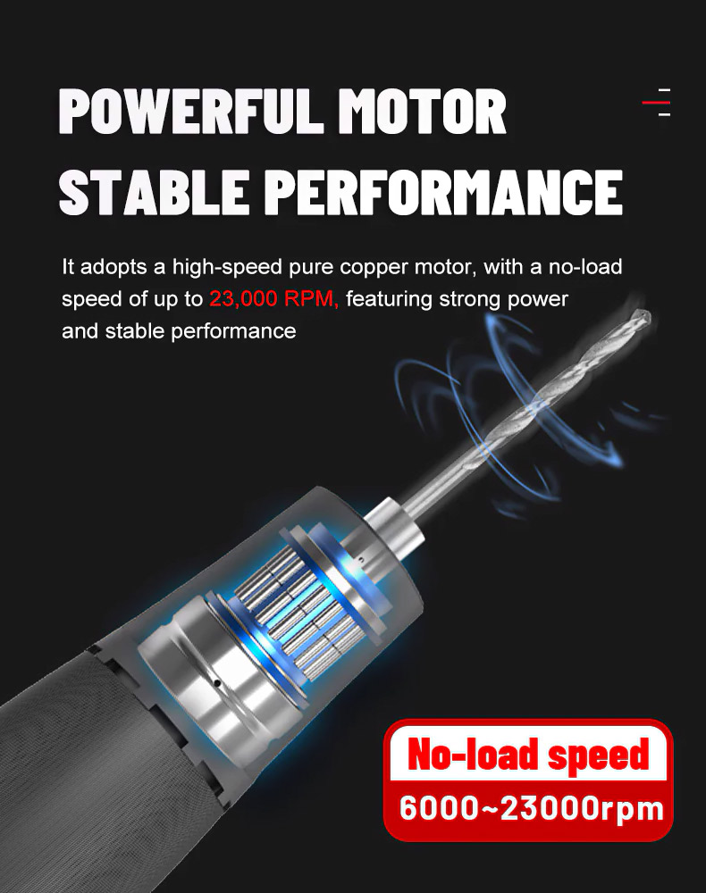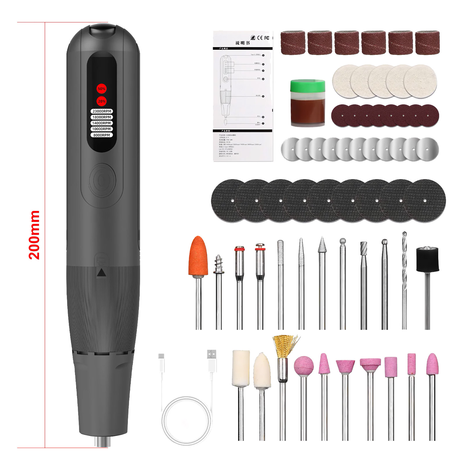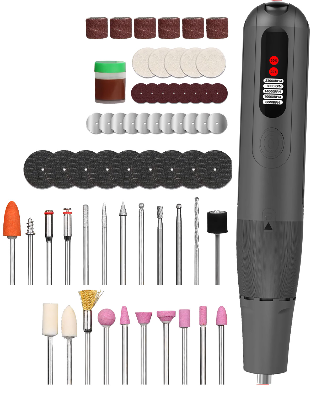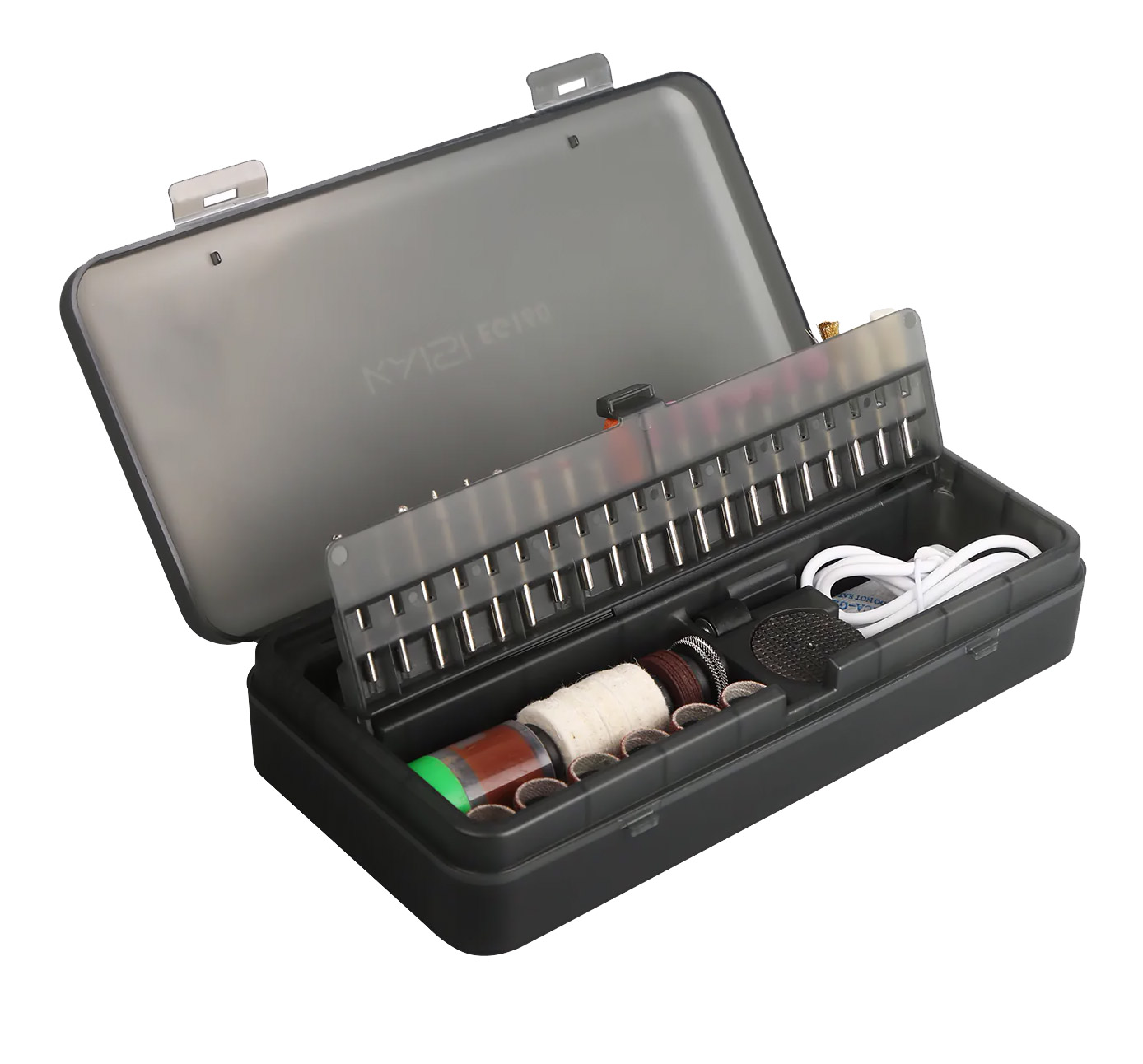 • EG160 Mini Retífica Portátil Sem Fio com 61 Acessórios e Bateria 1100mAh