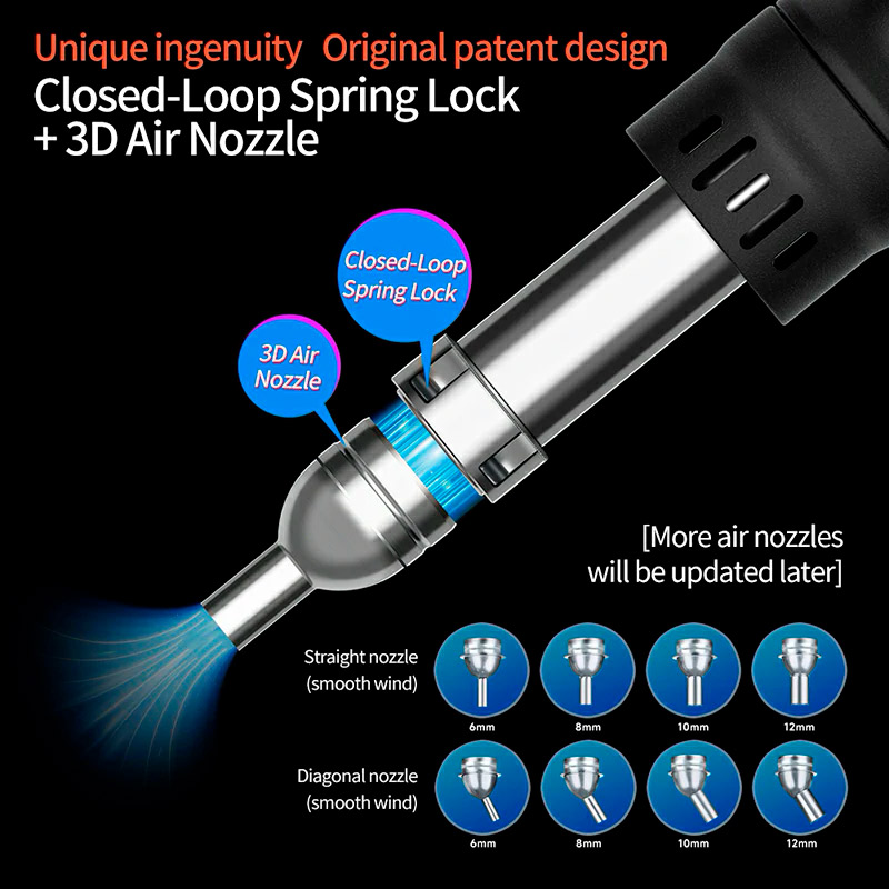 • Núcleo de aquecimento de 1400 W, atingindo 380 °C em apenas 3 segundos no modo de velocidade máxima
