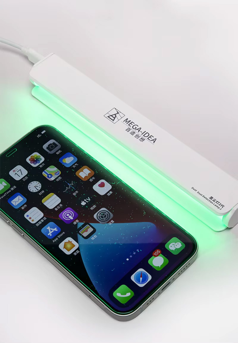 • Lâmpada profissional para inspeção de poeira e micro riscos em telas de smartphones e displays