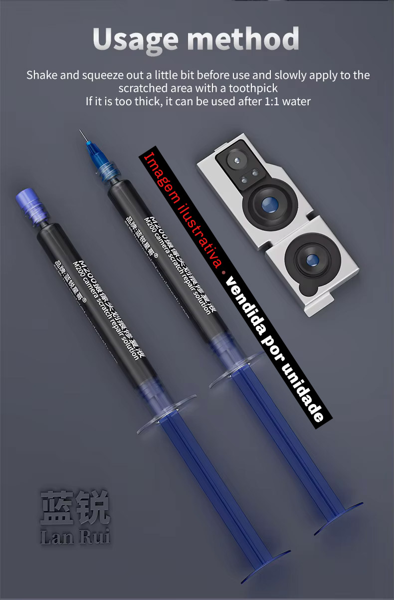 • Líquido indicado para reduzir a aparência de micro-arranhões e pequenas manchas em lentes de câmera e vidros de smartphones