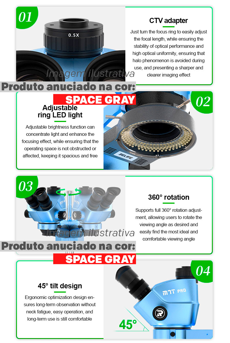 M7T Pro Space Gray Microscópio Trinocular Relife