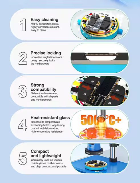 • Adequado para reparo e fixação de ICs de precisão como placas-mãe, CPUs e chips utilizados em bancada técnica