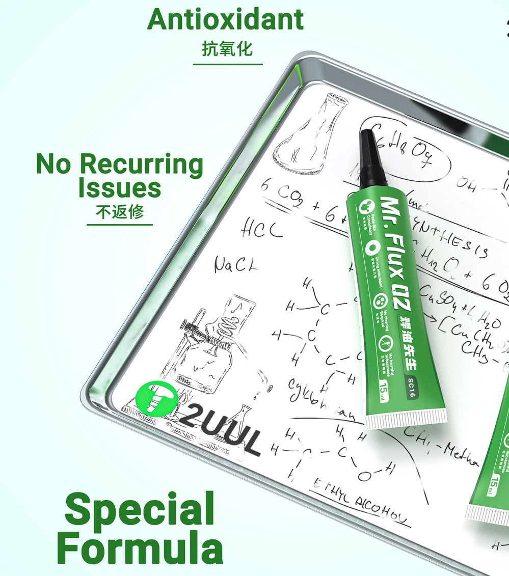 • Fluxo de solda profissional desenvolvido especialmente para reparo e retrabalho de placas PCB em dispositivos eletrônicos