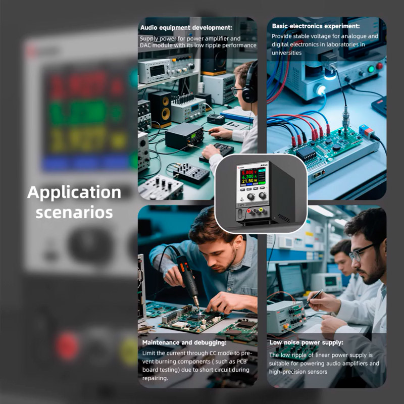 • Baixo ruído e ondulação, com desempenho eficiente e estável (≤2 mV rms / 3 mA rms)