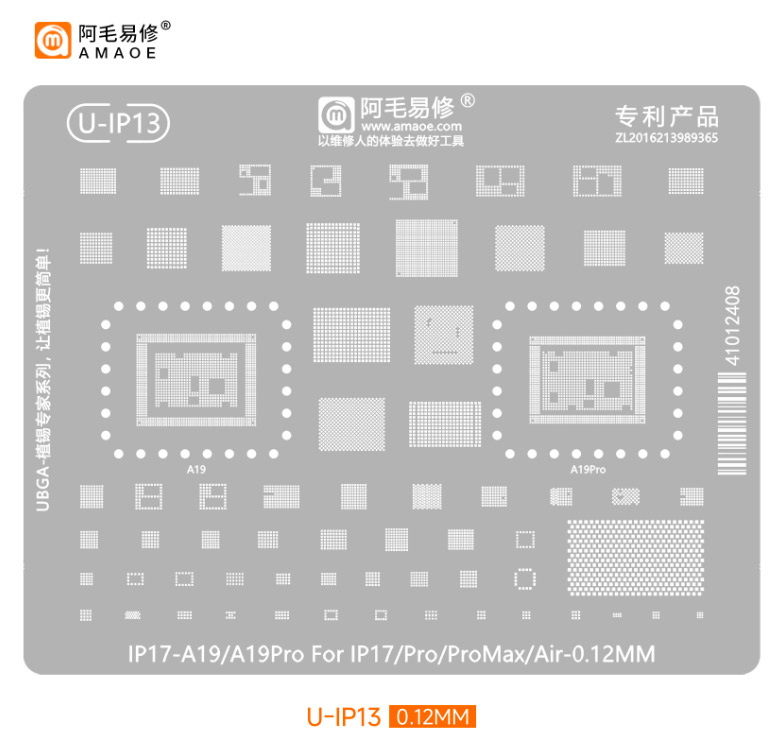 U-IP13 Estêncil BGA A19 / A19 Pro para iPhone 17 – 0,12 mm